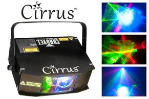 Cirrus Laser Web Effect uses a green and red lumia effect combined with a blue LED ripple effect to create one unique laser. It has three operating modes: manual, automatic and sound-activated. it is an excellent addition to any mobile performer's rig or small clubs.